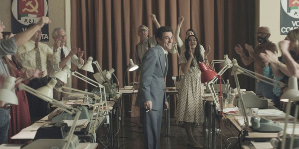 A.S.: Abbiamo ripreso i discorsi politici dai verbali, adattandoli al ritmo cinematografico, e ovviamente riducendone i tempi, visto che le riunioni di direzione, ad esempio, duravano dieci ore. Anche per gli incontri privati di potere, abbiamo usato le fonti a disposizione. Ad esempio, per l’incontro con Živkov (capo di stato bulgaro, ndr) abbiamo combinato i comunicati ufficiali, formali e retorici ma comunque utili, con gli appunti manoscritti di Berlinguer, disponibili all’archivio Gramsci. Per l’incontro del 1976 con Brežnev, a Mosca, non c’erano appunti. Allora ci siamo basati sulla testimonianza di Alfonsina Rinaldi, all’epoca giovane dirigente del PCI di Modena. Era stata invitata a far parte della delegazione, come si usava fare con i giovani, per farli crescere e imparare. Le altre persone non ci sono più, ma lei sì, e ci ha raccontato molte cose. Il congresso del PCUS era un evento politico pari alle elezioni americane, c’erano quattromila giornalisti, delegati da tutto il mondo. Brežnev aveva chiesto di incontrare Berlinguer prima del suo intervento. La linea da tenere era stata discussa con le altre persone della delegazione (Sergio Segre, Gianni Cervetti) e al suo ritorno Berlinguer ha accennato a cosa si erano detti. In questo modo abbiamo potuto ricostruire l’incontro. Per il colloquio con Andreotti, ci siamo basati su un articolo di un giornalista dell’Espresso, che aveva ascoltato le registrazioni, senza poterle conservare, e sul diario dello stesso Andreotti. L’incontro con Moro è raccontato in un libro monumentale (900 pagine!) di Luciano Barca, “Cronache dall’interno del vertice del PCI”. La parte familiare è basata sulle testimonianze dei ragazzi, della famiglia.
