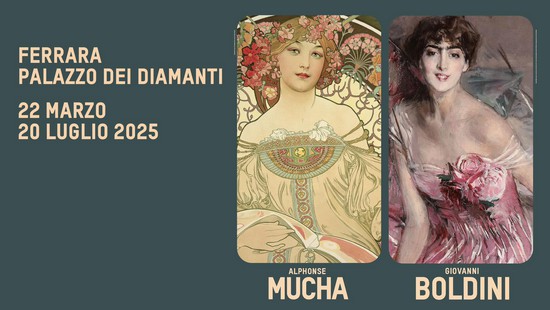Fino al 20 luglio 2025, le opere di Alphonse Mucha e Giovanni Boldini creatori di una inedita visione della bellezza al femminile ricompaiono in un faccia a faccia affascinante a Palazzo dei Diamanti di Ferrara presentandoci le loro figure di donne libere, eteree e seducenti agli inizi del ‘900 insieme a un linguaggio artistico ispirato a forme naturali agli antipodi delle nuove avanguardie moderniste della stessa epoca.