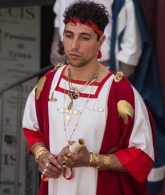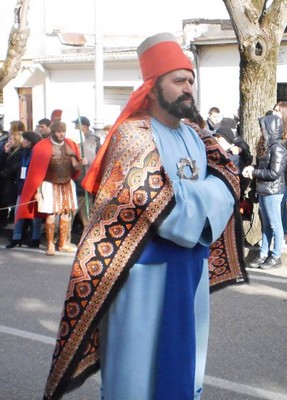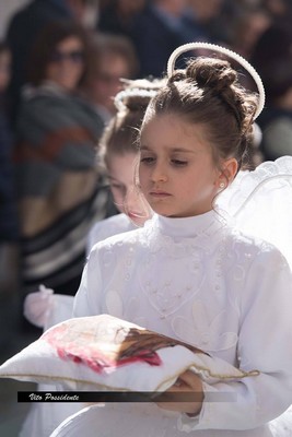La Processione parte dalla entrata in Gerusalemme del Gesù osannato dai bambini con le Palme, sull’asinello come vuole la tradizione. E poi i personaggi del Sinedrio e le Corte romana di Pilato con le donne patrizie, centurioni e soldati introdotti dai cavalieri con stendardo SPQR.