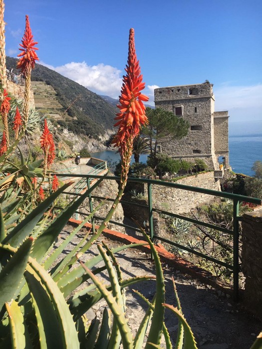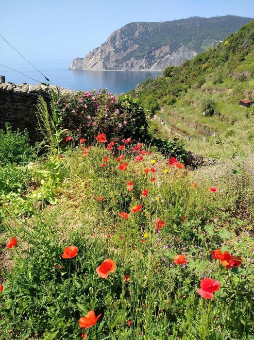 Alle spalle e attorno a questi paesi nati da un sogno di bellezza (e di grande fatica), è il regno delle euforbie, di agavi e vigne piantate sulla montagna, (tutta la zona è stata dichiarata dall’Unesco Patrimonio dell’Umanità). Uno spettacolo da mozzare il fiato quando, arrivati dal promontorio di Fegina, dopo Monterosso, ci si volta a contemplare le Cinque Terre degradanti in una costa a rias. Ovunque si nota la trasformazione operata con titanica costanza da un popolo di pescatori che si è fortemente voluto a vocazione contadina. Corre il pensiero al lavoro di generazioni e generazioni di liguri, che da quasi un millennio hanno spezzato la roccia per costruire i muretti a secco a reggere il grandioso terrazzamento e rendere produttiva una zona praticamente incoltivabile attraverso una fatica disumana paragonabile alla costruzione delle piramidi d’Egitto.