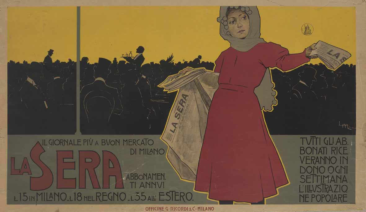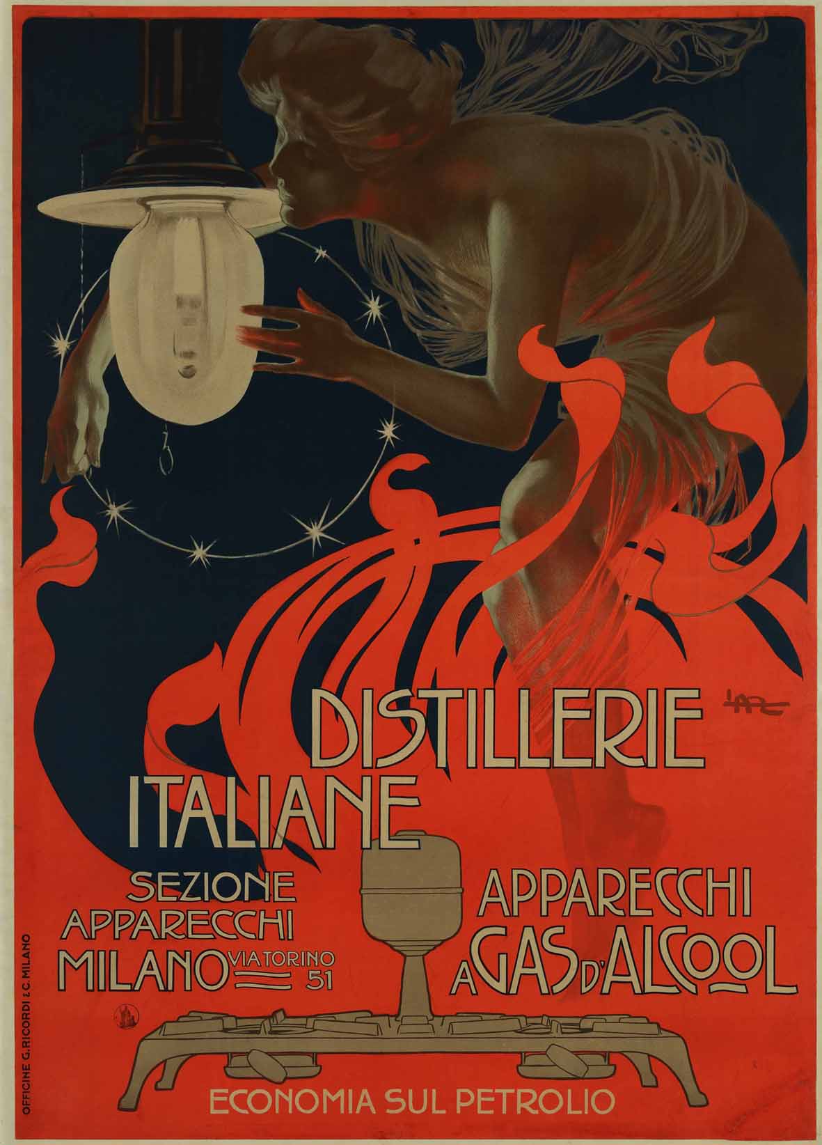 Fu comunque grazie all’intuito di Giulio Ricordi, che Metlicovitz poté esplicare, dagli ultimi anni dell’Ottocento, tutte le proprie potenzialità espressive, non solo come grande esperto dell’arte cromolitografica, ma pure come disegnatore e inventore di quegli ‘avvisi figurati’ (così eran chiamati allora) che, affissi a muri e palizzate, mutarono il volto delle città con il loro vivace cromatismo, segnando anche in Italia la nascita di quell’arte della pubblicità sintonizzata su quanto il ‘modernismo’ internazionale andava proponendo nelle arti applicate sotto i vari appellativi di Jugendstil, Modern Style, Art Nouveau, Liberty (le varie denominazioni tra Austria, Francia, Gran Bretagna).