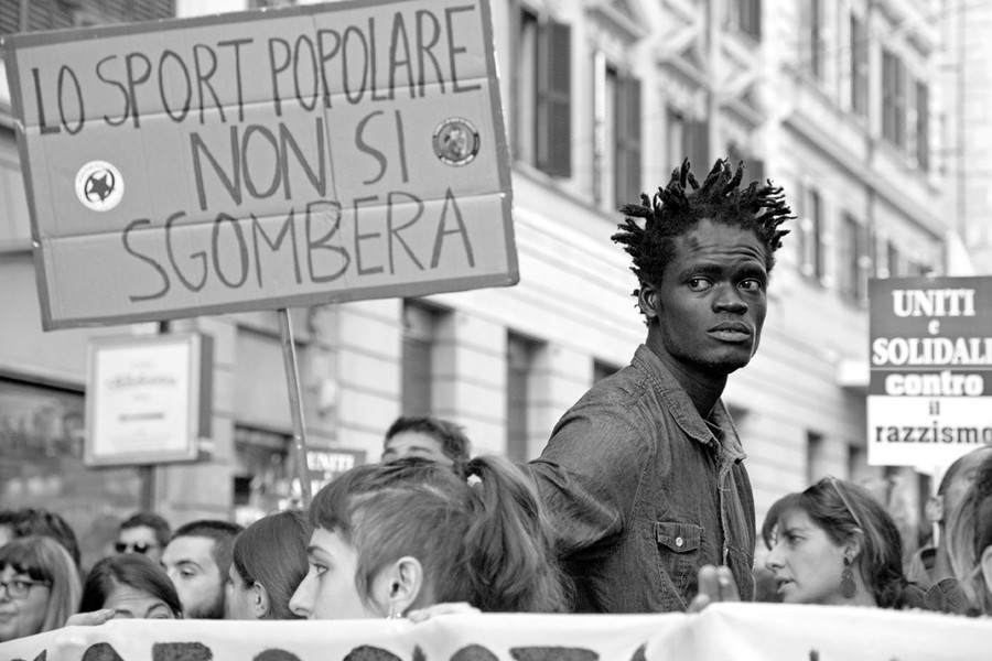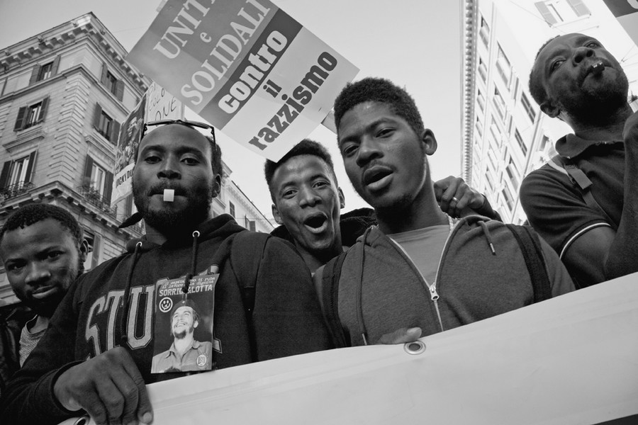 “Dio è grande” cantano e danzano, lungo il corteo contro il razzismo, le moltitudini di ragazzi, di uomini, di donne, per le strade di Roma. E a sentirli cantare e vederli danzare tutto sembrano fuorché un’orda di selvaggi, brutti, sporchi e cattivi, da tenere a debita distanza, nei sudici centri d’accoglienza o ai margini delle nostre città.