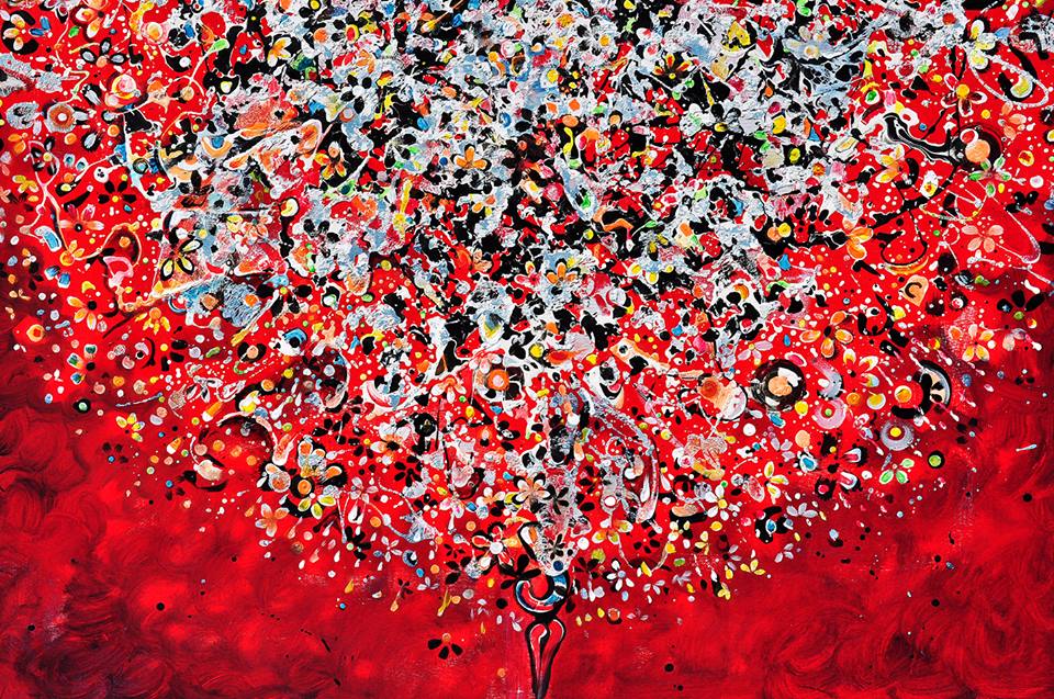 Tra le opere esposte spicca la “Smorfia”, la tela più grande e più complessa nella veridicità dei significati, una collezione di novanta tele suddivisa in cinque pannelli che raccontano le credenze del linguaggio onirico rivisitate attraverso la contemporanea matrice della poetica dell’artista. Il ricordo di fatti e volti del passato e del presente perfettamente incasellati nel suo numero attraverso i manifesti di slogan pubblicitari.