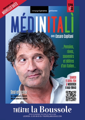 Dates en avril et mai. Mis en espace et interprété par l’acteur et auteur Cesare Capitani, ce spectacle Médinitalì est un seul en scène dans lequel un comédien, un Italien qui vit en France, laisse son esprit vagabonder entre ses rêves, ses souvenirs, ses réflexions, ses délires et fantasmes. Un récit, souvent drôle et parfois touchant aussi, qui conte la vie d’un homme entre deux langues, deux cultures, deux pays… Un pied en Italie et l’autre en France, sans jamais pouvoir s’assoir, car au milieu il y a les Alpes ! Cesare Capitani a déjà proposé ce spectacle tout public par le passé, mais il s’agit ici d’une nouvelle version à découvrir. Après les dates de mars, voici les dates annoncées: