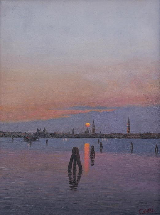 Una valenza luministica che Colussi, chiamato il pittore dell’Adriatico,- scrive Accerboni – sa cogliere e interpretare con grande sensibilità e maestria, ricostruendo con delicata e calibrata vena lirica e ripetute, sapienti velature, il fascino di Trieste e di Venezia e del loro mare. La medesima, sottile inclinazione neoromantica, intrecciata a una personale vena cromatica e a una grande abilità tecnica, caratterizza le sue vedute. Così l’artista sa descrivere gli incantati tramonti e le albe che sorgono nel golfo di Trieste e catturare l’ineffabile e magica luce della Serenissima e la pace della laguna, consegnandoci un angolo di mondo, in cui poter sognare ancora.