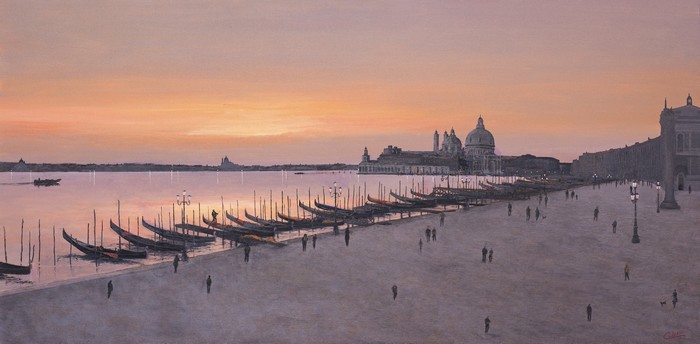 Memore di una vena neoclassica, che appartiene culturalmente a Trieste, dov’è nato nel 1957, l’artista prosegue in modo del tutto personale l’antica tradizione di pittori e vedutisti attivi a Venezia nel ‘700 quali Francesco Guardi e Canaletto, vicino al primo per ispirazione poetica e al secondo per l’interpretazione più razionale dei luoghi. Ma, agli esordi ha guardato anche ad altri artisti, in questo caso giuliani, come Giuseppe Barison, Giovanni Zangrando, Ugo Flumiani e Guido Grimani, tutti in un modo o nell’altro legati alla grande tradizione pittorica e coloristica veneziana, che rappresentava per i pittori triestini un importante punto di riferimento, nel secondo Ottocento e nel primo Novecento, accanto alle Accademie di Monaco, Berlino e Vienna.